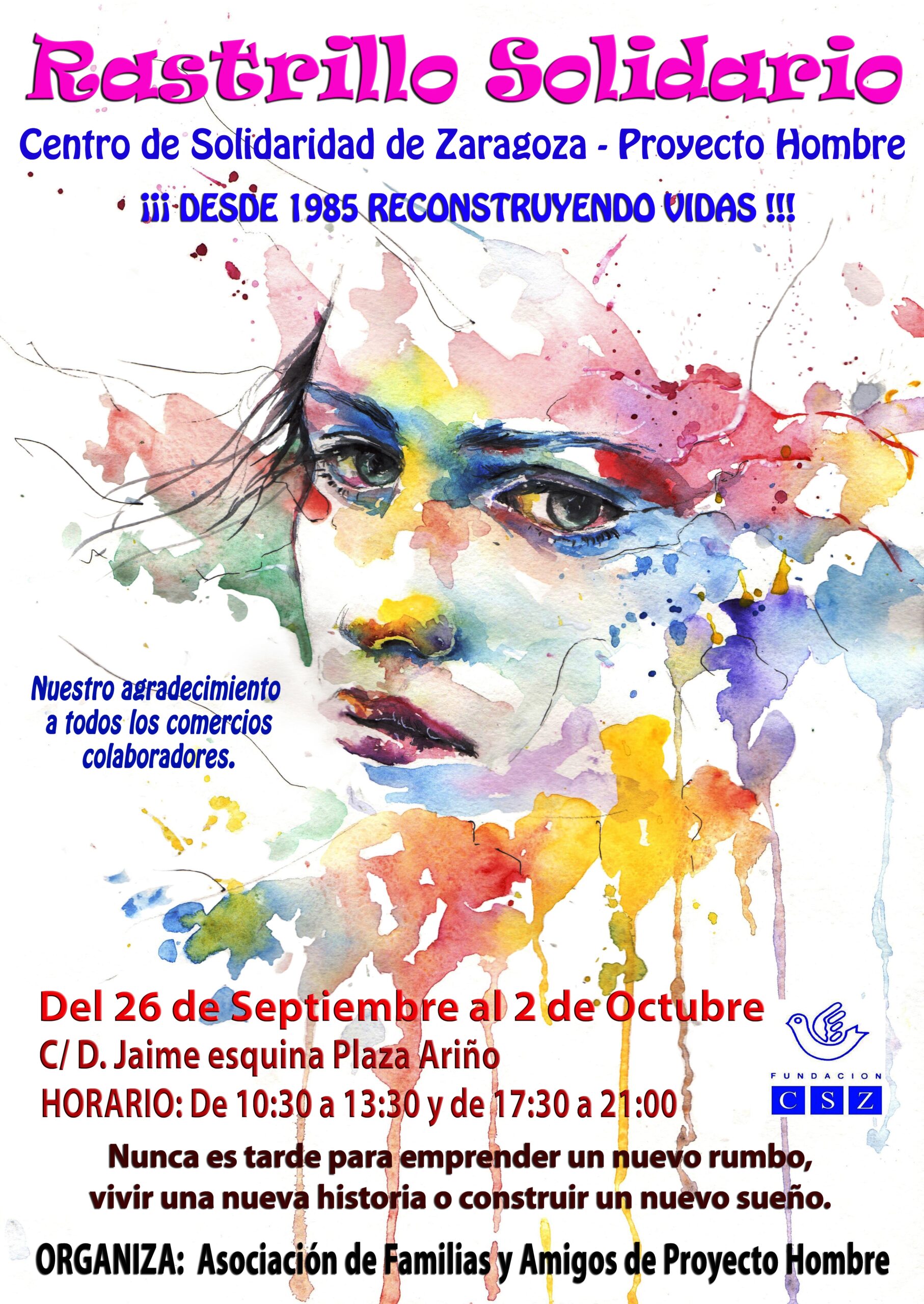 El rastrillo se ubica en la plaza Ariño (esquina calle Don Jaime) de Zaragoza con el horario de 10,30 a 13,30 horas y de 17,30 a 21 horas.